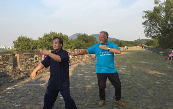 我徒步中国有几个原因。除了之前提到的纪念抗战胜利70周年,这也是第一个中英文化交流年,当然也是为了和平徒步。但我必须得说,最初的计划是从北京走到南京,是去宣传和平联合。所以从北京到南京是为和平徒步,但是从南京到杭州,雪琳的家乡,是为爱。通过第一次徒步行走我遇到了雪琳,从那以后我们订婚了,我第一次徒步走到巴黎再回来的时候我们结婚了。这是我们一起做的意义重大的事情,这是团队的努力。同样这强调了一个信息,大家都是相同的,雪琳来自浙江杭州,我来自英国,我们彼此相爱,彼此理解,可以一起做事情,去宣扬和平,对于我们徒步中所宣扬的东西来说,这是一个很好的例子。