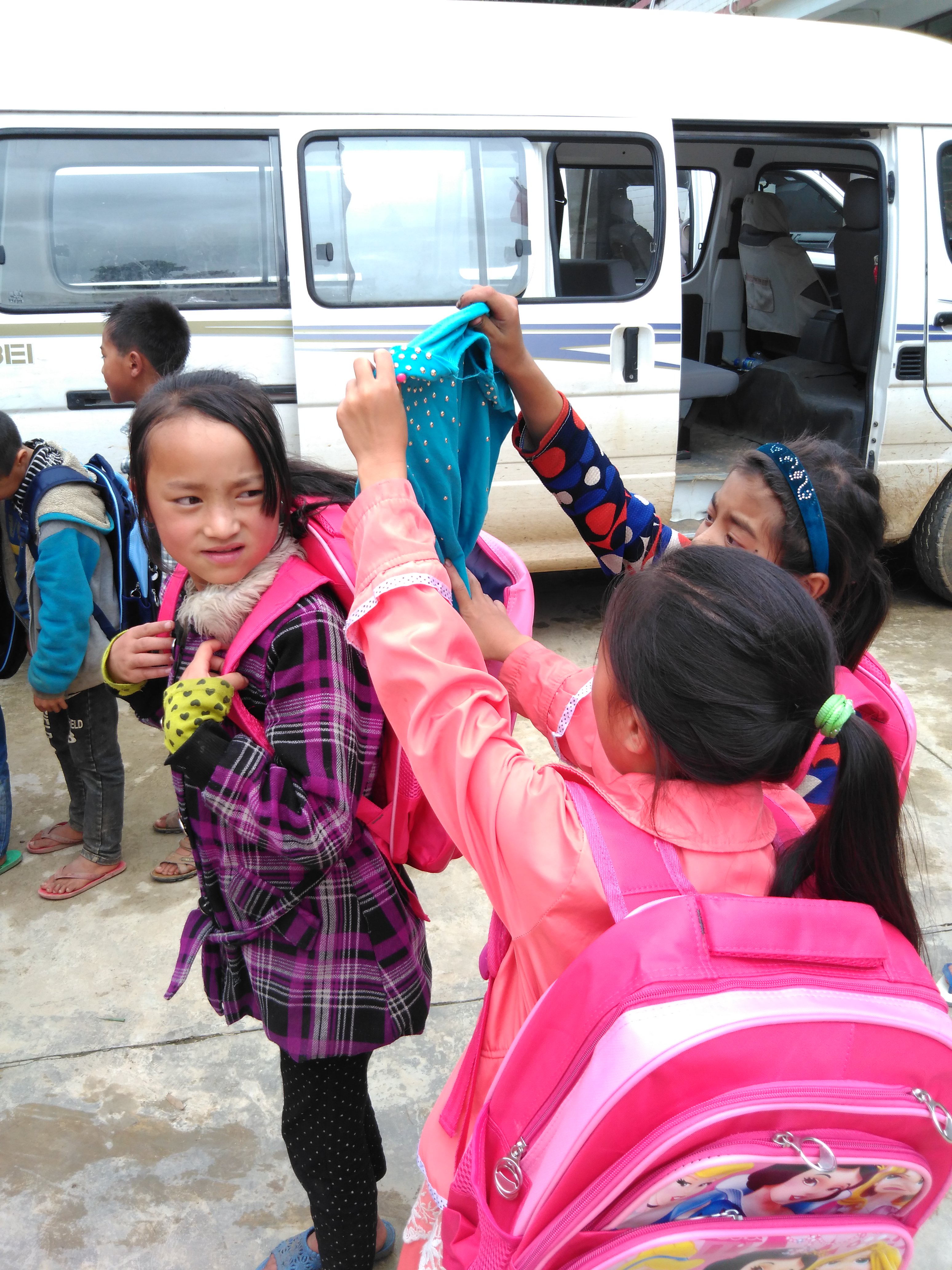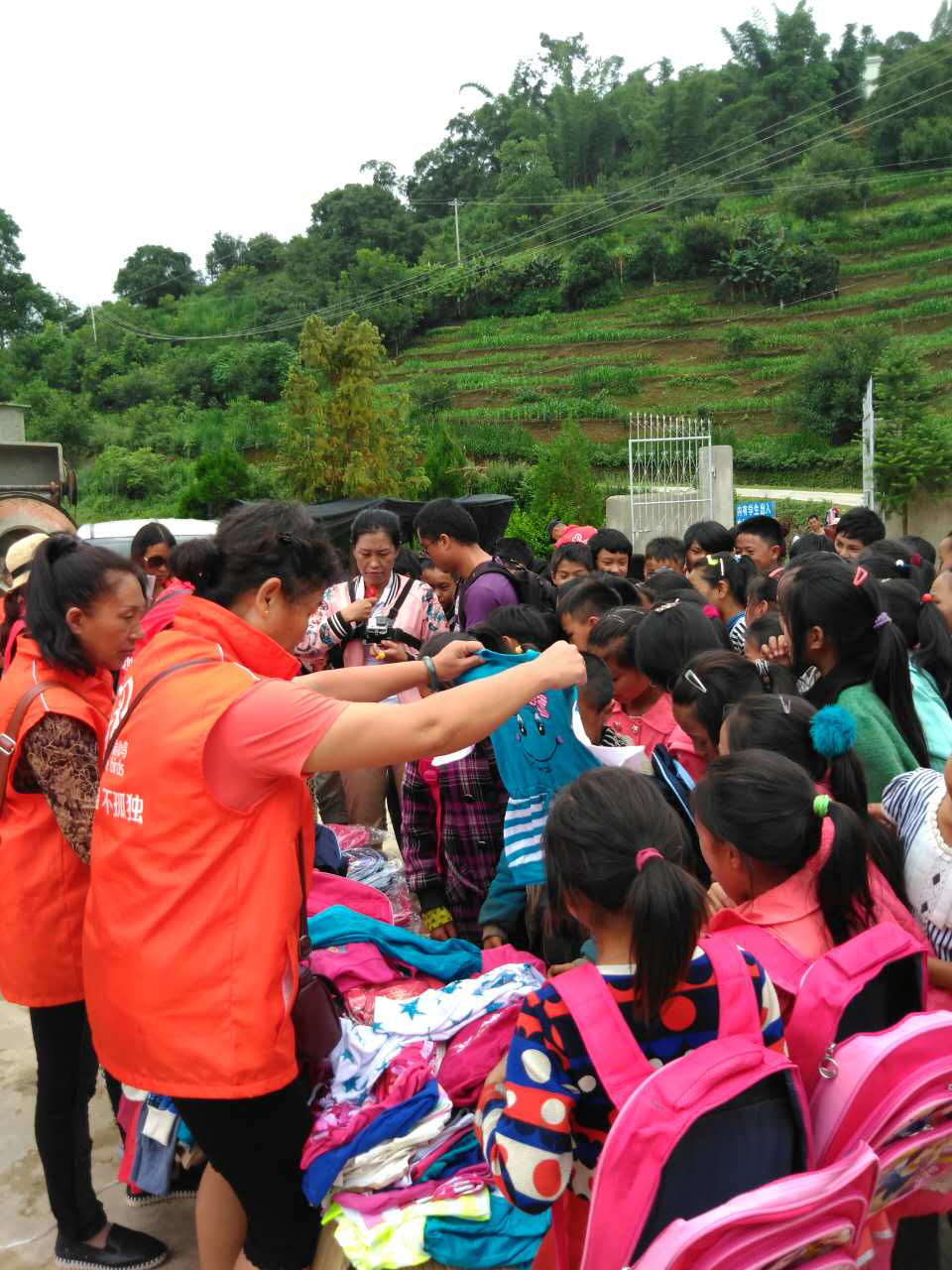 在孩子们的笑容中,爱心车队留下部分爱心物资后。随后志愿者们又驱车前往另一个目的地——班卡完小,那里的370余名孩子也在期待漂亮的新衣服和学习用品的到来。