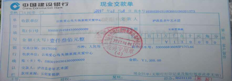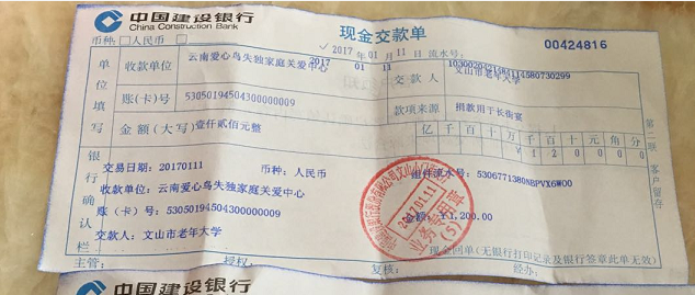 “我和红河州老年大学的学生们聊天,谈起爱心鸟公益帮助这些贫困孤寡失独老人,他们也纷纷表示要献爱心,我们31人支持失独孤寡老人爱心团圆饭1485元。请告诉夏文学老人他们,有什么困难,我们一起来帮助他们。”红河州老年大学、可乐球国家级教练邓燕老师带头呼吁班里的学生献爱心。