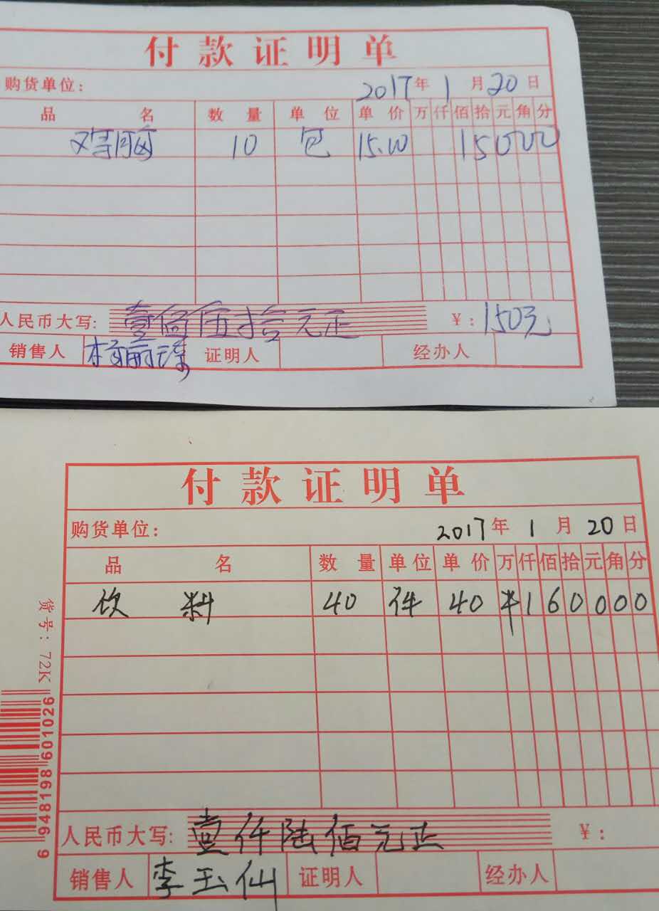 买鸡胸肉、饮料1750元。