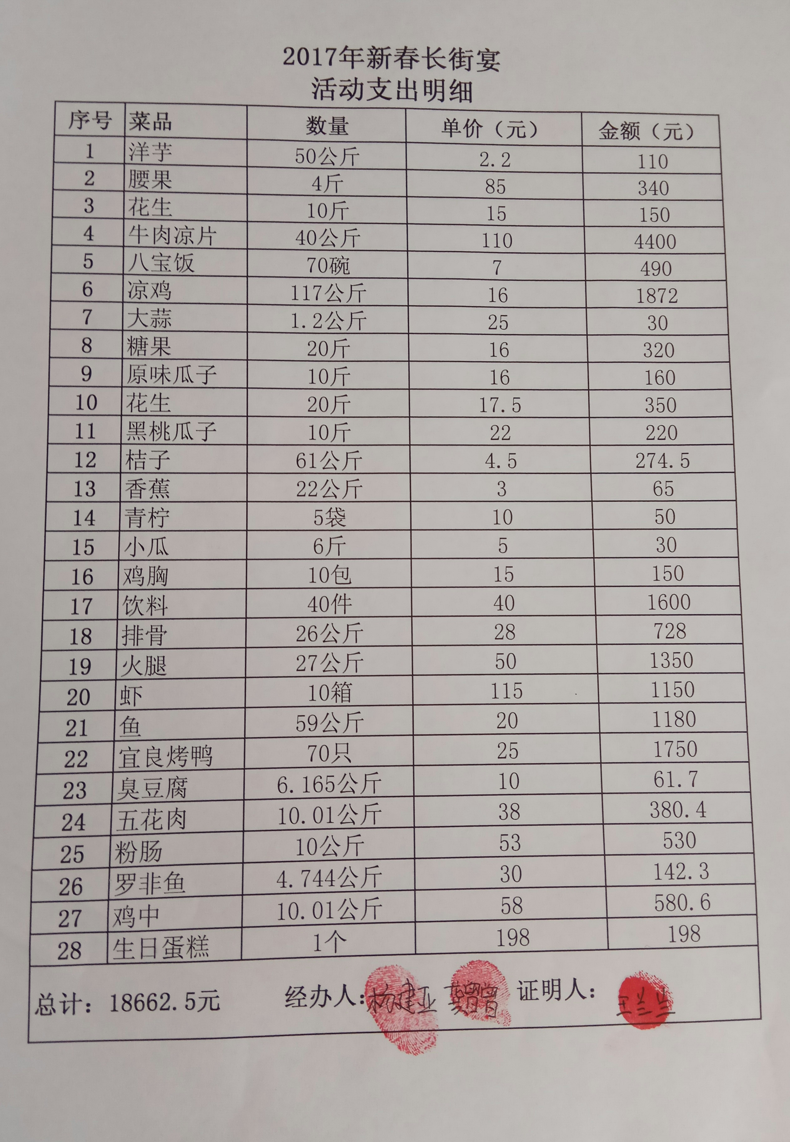 爱心鸟新春长街宴收支明细如下,敬请各位网友和爱心人士监督: