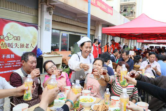 往届长街宴,失独孤寡老人们开心共享团年饭。