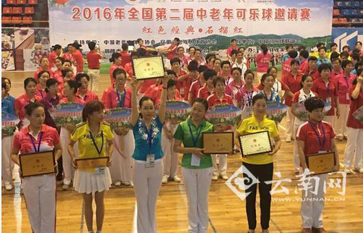 云南网讯(记者 秦黛玥)2016年第二届全国老年人可乐球大赛日前闭幕,云南省代表队这次继续发力,获得两项大奖。这支代表着云南省可乐球最高规格和水平的队伍,凭借自编参赛节目《送子鸟•感恩情》获得了优胜奖,规定动作也获得了全国第三的好成绩。云南代表队连续两年获奖,为云南省赢得了荣誉。