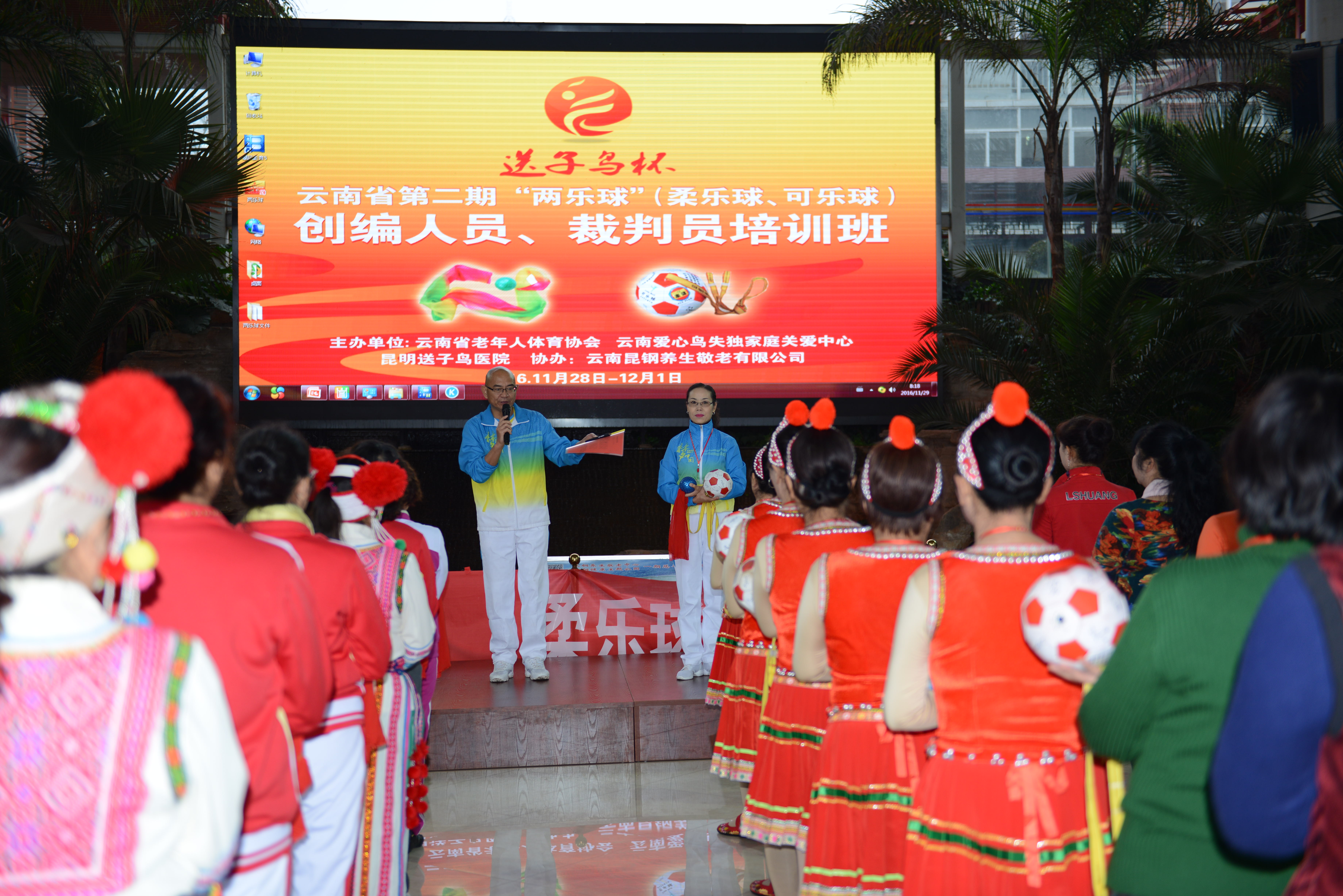 “两乐球(柔乐球、可乐球)是云南省老年人体育协会引进和倡导各级老体协普及推广的老年体育新项目。经前期的培训和推广,深得广大老年人的喜爱。”11月29日晚,云南省老体协副秘书长周晓峰在2107年“送子鸟杯”云南省首届老年人两乐球(柔乐球、可乐球)交流活动规程研讨会上表示,为把2017年交流活动办成一届热烈隆重、开拓创新、和谐交流的老年体育盛会。此次活动以推广体育公益、健康健身文化为主要内容,动员全省各社区发挥积极性和主动性自发组队、培训和比赛,增强健康健身热情及社区群众的凝聚力。