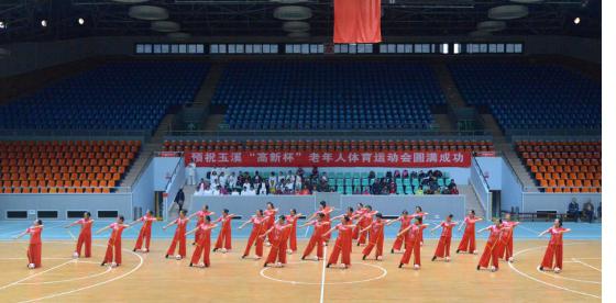 玉溪——玉溪市老体协操舞专委会在“高新杯”老年运动会开幕式上展风采