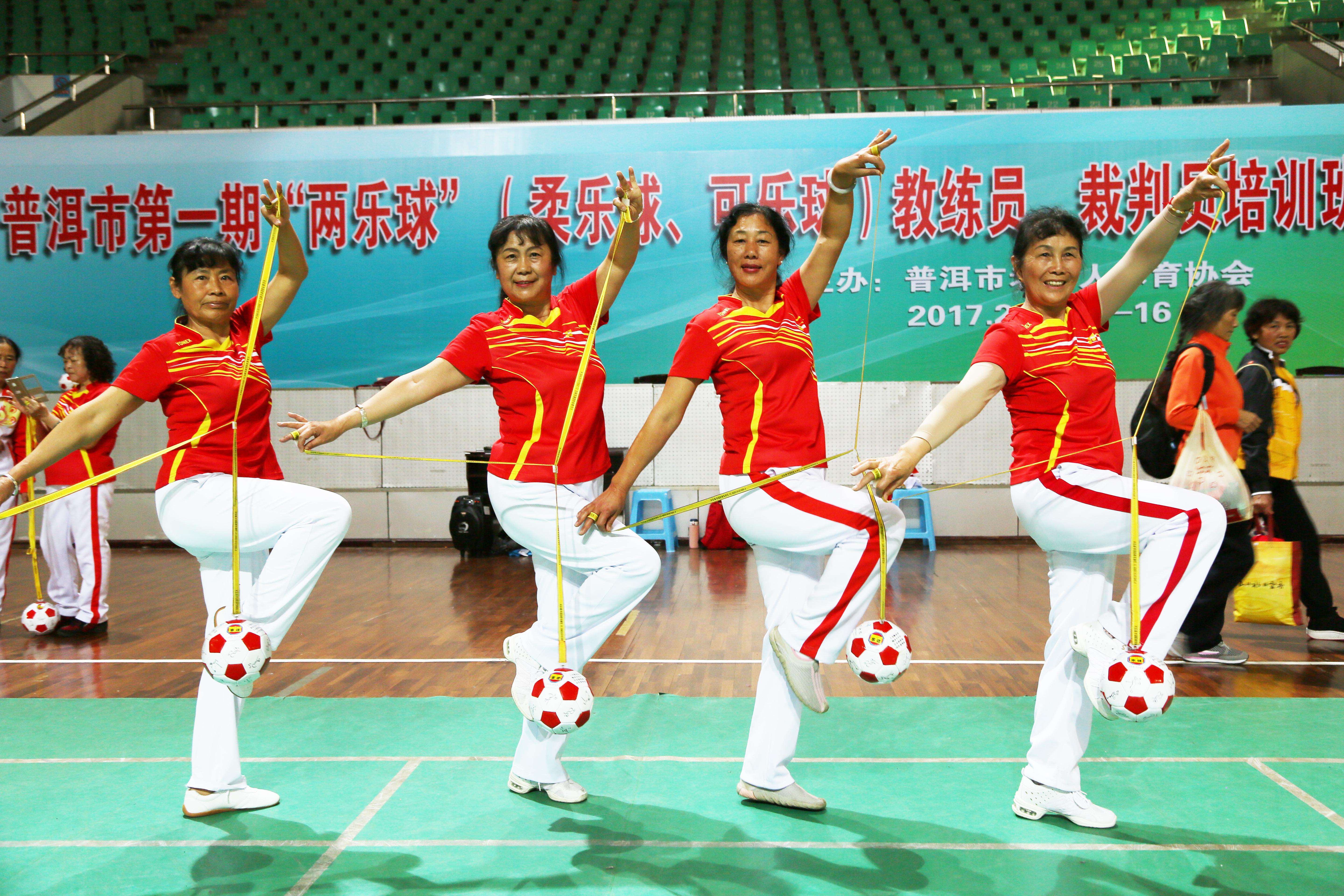 2016年12月21日至23日,德宏州老年体协成功举办“两乐球”裁判员、教练员培训班。来自全州各县市的36名学员系统学习“两乐球”技术、套路和规则与裁判法等课程,考试合格后,以德宏州各县市、州直属机关老年体协,州老年体协健身球操(舞)专项委员会、专项协会为首的36名学员就此肩负起在全州各县市两乐球推广普及的重任。
