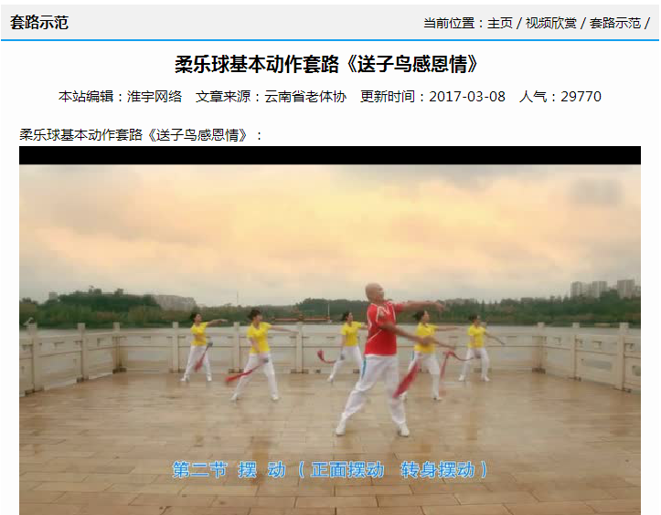 图说:柔乐球基本动作套路《送子鸟·感恩情》在柔乐球官网点击量高达29770人次。